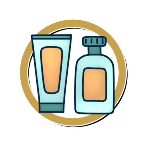 Creme, Puder, Badeschaum. Hier dreht sich alles um Pflege- und Beauty-Produkte, welche man an sich selbst oder entsprechend der Aufgabenbeschreibung verwenden soll.