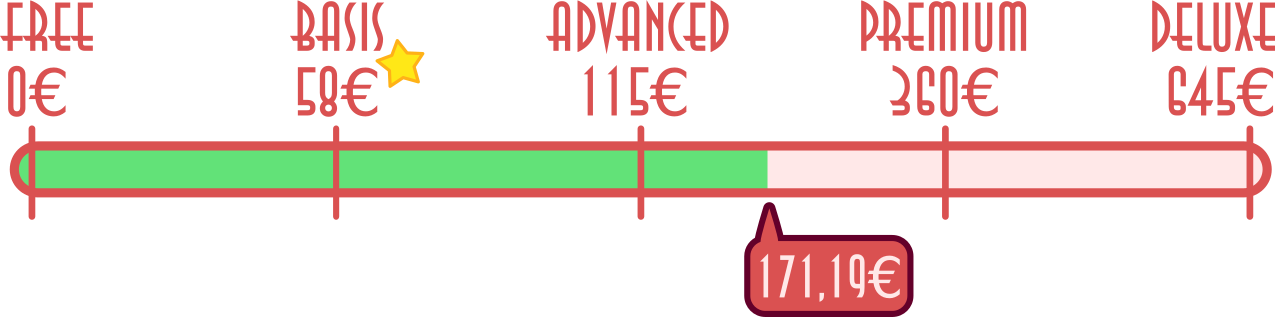 Immer wenn ein neuer Meilenstein erreicht sein sollte, werde ich auf den jeweils höherwertigen Tarif beim Anbieter der Webseite aufrüsten. Dieser gilt dann immer für ein Jahr. Danach wird der Fortschritt zurückgesetzt.